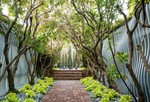 Piltidel ühe aiakujunduse näide liikudes ruumist välja mööda puude koridori peeglitega kujundatud hekialasse.